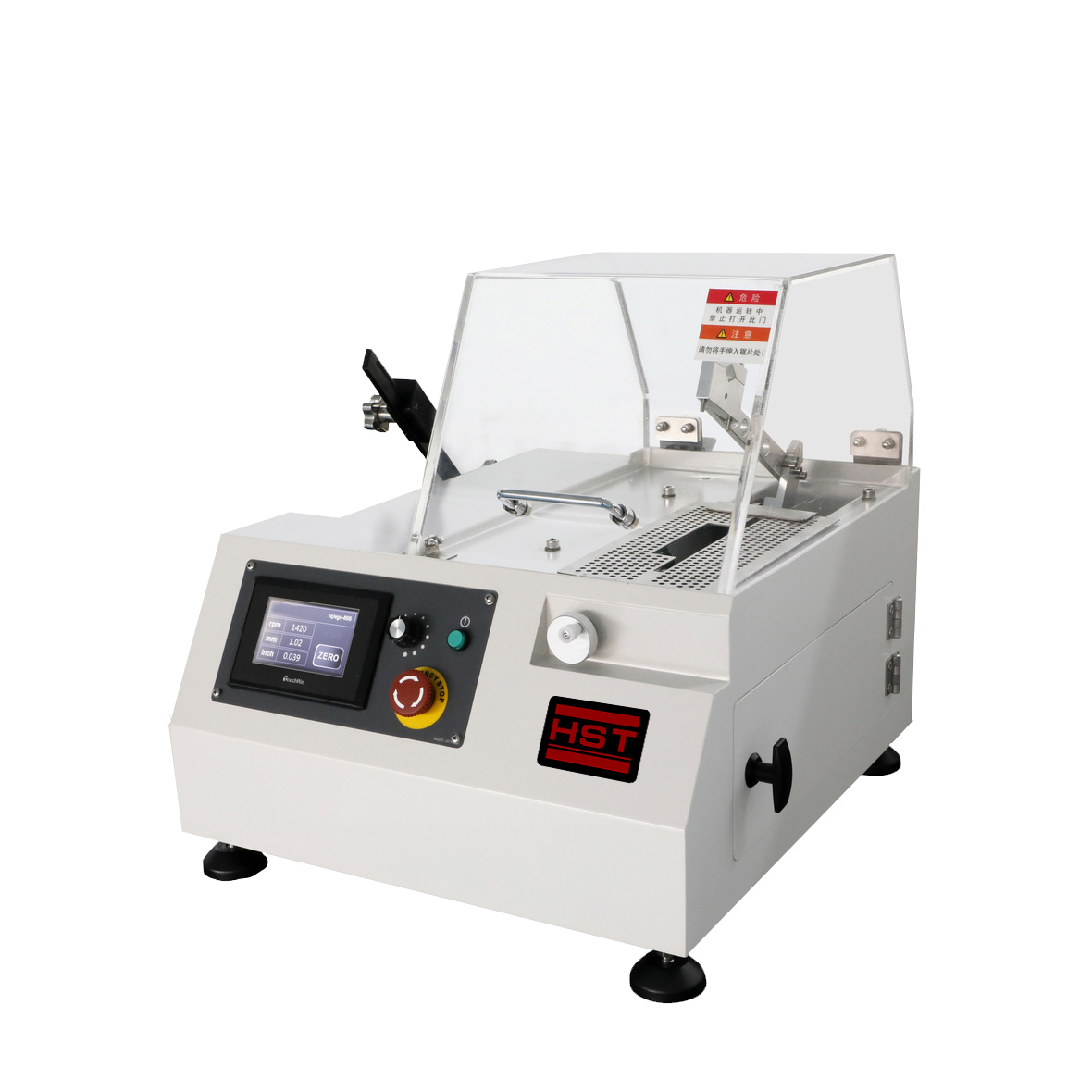 मशीन धड़, नियंत्रण कक्ष, कटिंग रूम, मोटर, अनुप्रस्थ फ़ीड तंत्र, लोडिंग लीवर तंत्र, कूलिंग सिस्टम, डायमंड कटिंग पीस और अन्य घटकों से बना है। यह न केवल 50 मिमी से कम व्यास के साथ गोलाकार भागों को काट सकता है, बल्कि 20 मिमी की ऊंचाई के साथ आयताकार फ्लैट भागों, 150 मिमी की चौड़ाई और 250 मिमी की लंबाई भी हो सकता है।